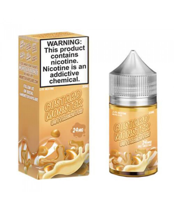 Whether you are a fan of butterscotch or simply can’t get enough of the incredible quality that exudes from the Jam Monster name, we urge you to experience the delicious taste and remarkable experience of Custard Monster Butterscotch Salt. It is the perfect pairing for your vape pod system.