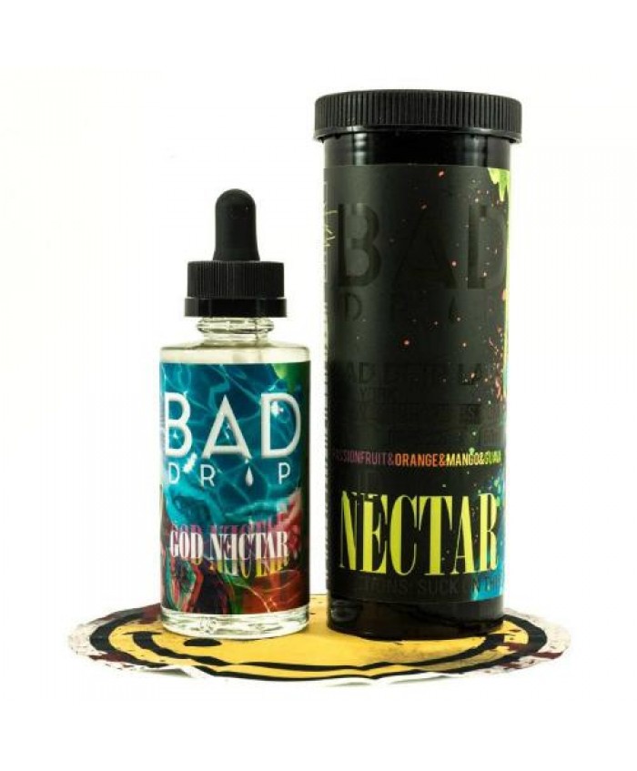 Bad Drip God Nectar by Bad Drip Labs 60ml is a tropical blend of fresh guava, juicy mangoes, ripe oranges, and sweet passion fruit. This e-juice has an authentic fruity taste and has these flavors fused together perfectly. God Nectar by Bad Drip Labs takes these genuine flavors that are made with the highest quality ingredients to provide you with a flavor-packed experience.