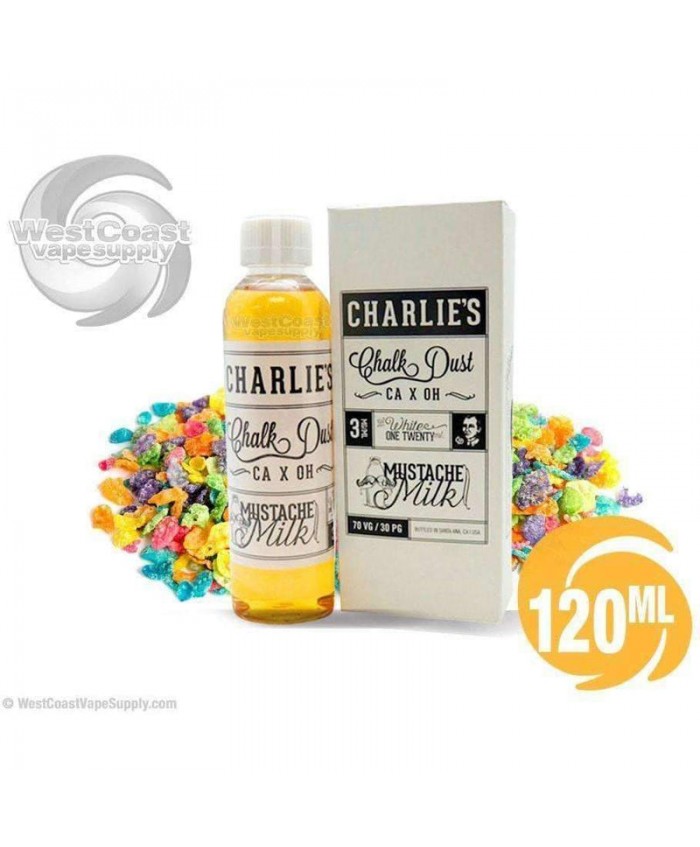 Mustache Milk vape juice by Charlie's Chalk Dust is fruity cereal drenched in a creamy milk bath. Mustache Milk breakfast cereal is like no other.