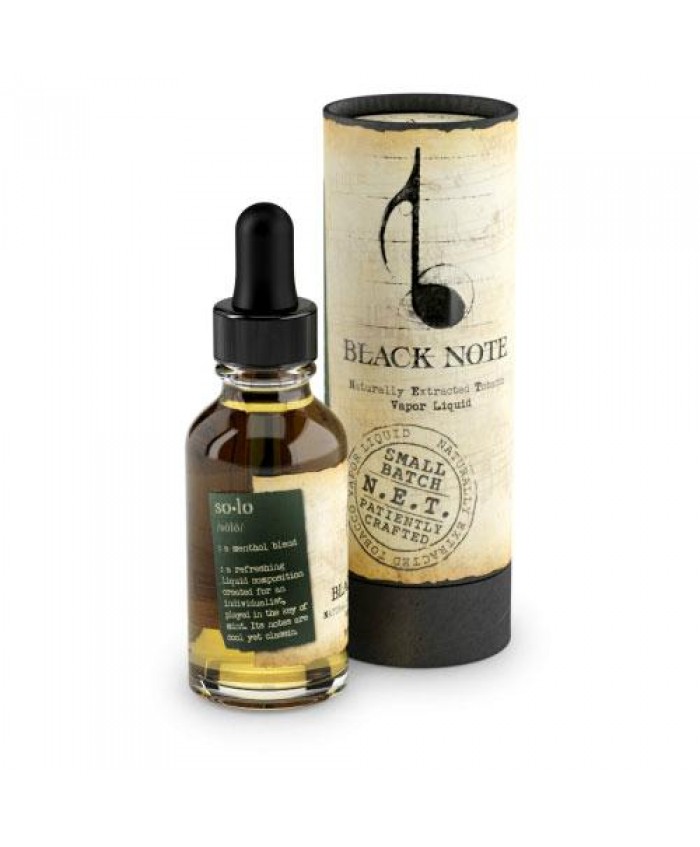 Solo by Black Note E-Liquid 30ml is a Turkish tobacco and menthol vape juice flavor blend. Turkish tobacco is a more aromatic small leaf tobacco that has been sun cured. Turkish tobacco has a milder flavor and a lower nicotine level with each leaf. Sun curing refers to tobacco that dries uncovered out in the sun. Other curing options include flue, air, and fire. Sun cured tobacco is used on oriental tobaccos. Followed by this authentic tobacco taste is a strong icy menthol to provide a cooling ending to this e-juice.