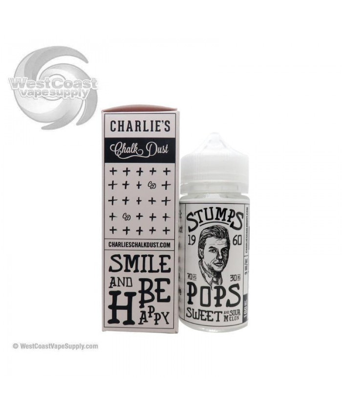 Stumps "Pops" by Charlies Chalk Dust 100ml vape juice is a sweet and sour melon candy flavor. A delightful treat indeed.