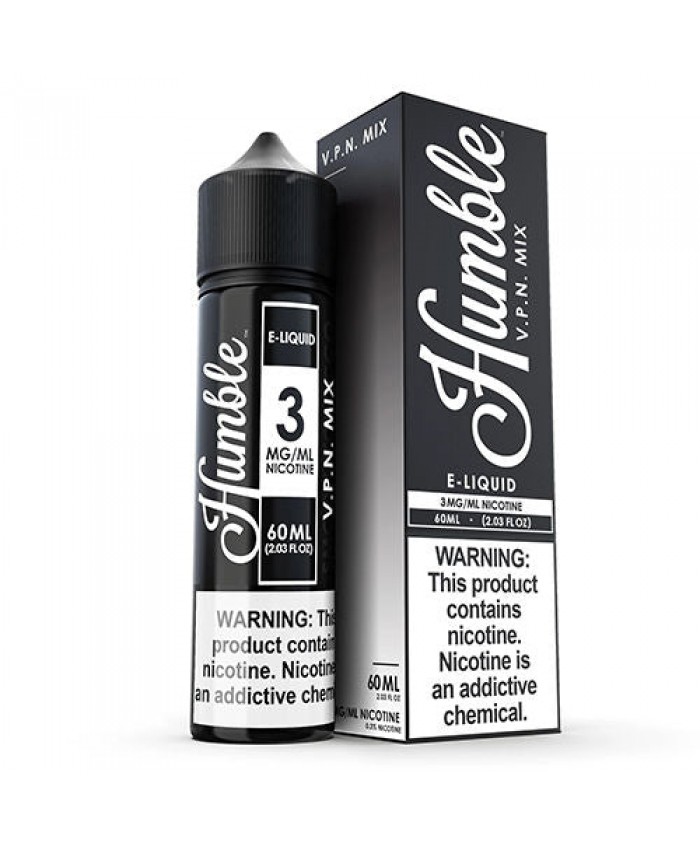 What is Humble V.P.N Mix vape juice? The V.P.N Mix by Humble Juice Co is a brilliantly formulated concoction that is completely flavorless. In fact, it uses the most basic ingredients to create vape juice, minus the addition of flavoring. It consists of Propylene Glycol, Vegetable Glycerin, and Nicotine. Each ingredient is standard in the industry, yet Humble Juice Co. ensures that the ingredients have the finest quality so that you receive the best experience possible. V.P.N Mix is available in a 60mL bottle and comes in two nicotine strengths, which include 3mg and 6mg to suit your preference.