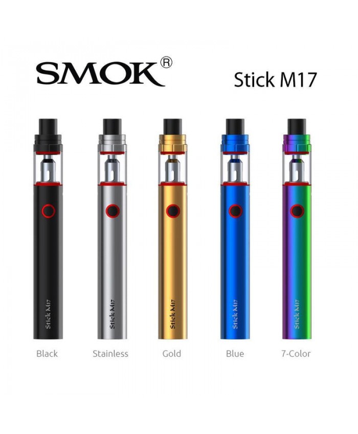 The SMOK Stick M17 Starter Kit is an all-purpose platform catering towards vapers looking for on the go and travel-friendly cloud-chasing performance. It is an ultra small and slim all in one kit that offers quite a punch and the ability to last with it's 1300 mAh battery. The body is designed as a cylindrical vape pen-style that integrates a top filled 2ml leak proof tank using SMOK's newly designed M17 coil heads. The Stick M17 also utilizes a direct output voltage systems, correlating battery life to determine the power output alongside a multitudes of safety protections. Brilliantly constructed with incredible ergonomic operations and performance capabilities, the SMOK Stick M17 Starter Kit is a phenomenal compact platform at an affordable price.